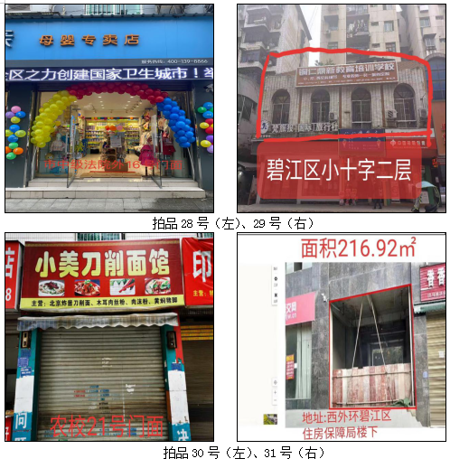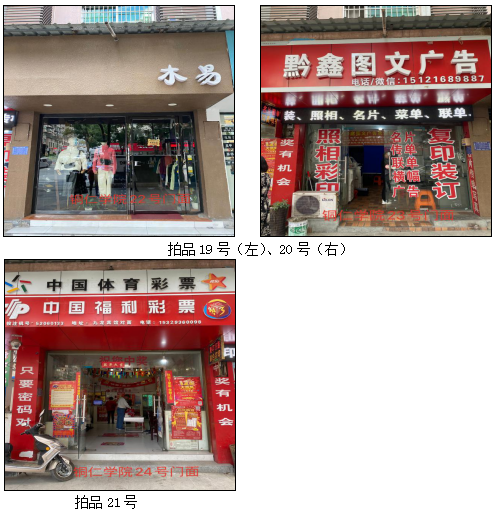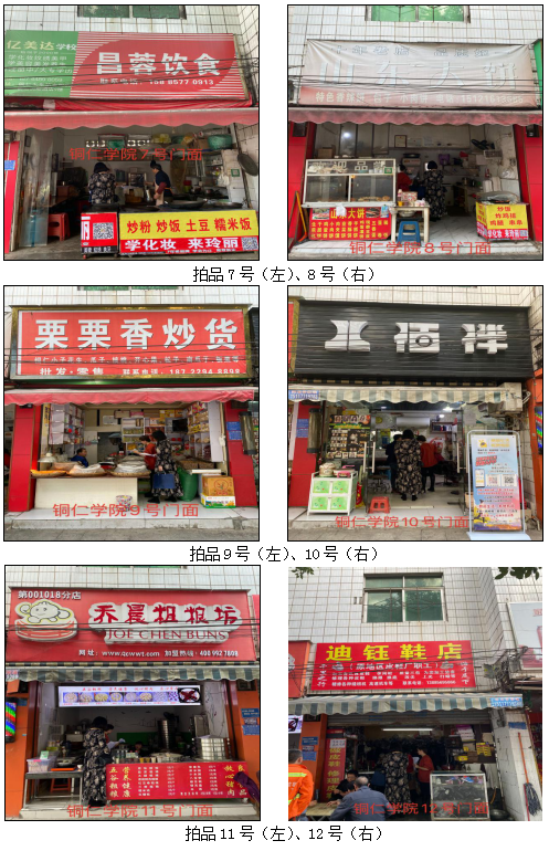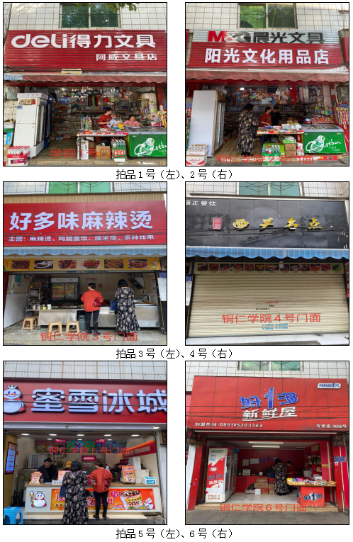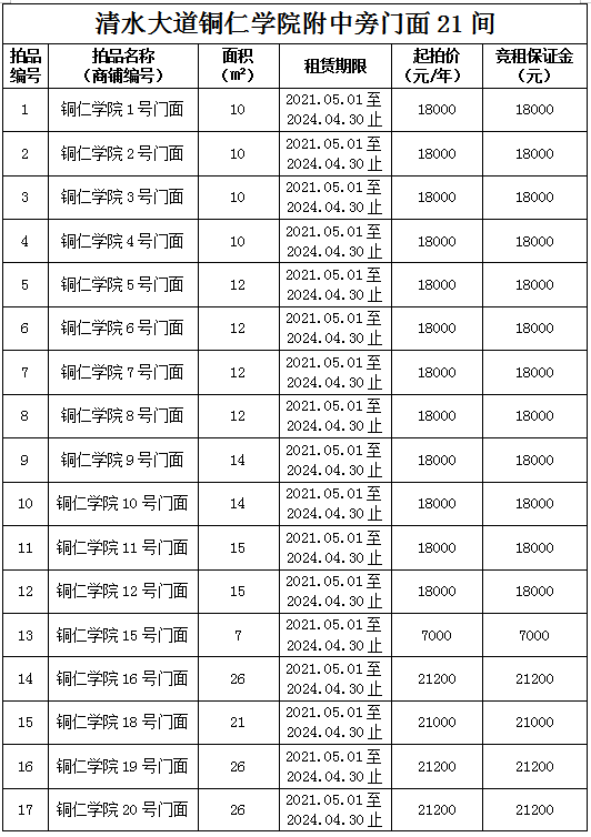 1.拍品1至21號標的位于銅仁市清水大道銅仁學院附中旁,面積7——28㎡,租賃期3年(2021.05.01至2024.04.30止),交通便利,人流量大。