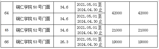 其中拍品57號標的包含2個門面(銅仁學院38號、39號門面),為整體拍租;