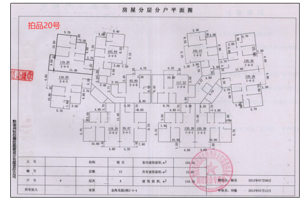 1.標(biāo)的位于獨(dú)山縣百泉鎮(zhèn)虹橋路金海龍庭A棟2單元,于2013年建成,建筑面積均為119.2㎡(套內(nèi)面積103.35㎡),建筑物外墻刷墻漆,室內(nèi)客廳鋪地磚,墻面刷白漆,臥室鋪木地板,廚房衛(wèi)生間地面鋪地磚,安裝鋁合金窗,木包門。臨近古鳳博物館,小上?;▓@,生活配套設(shè)施齊全,交通通達(dá)度較好,有多條公交及出租車通達(dá),供電、供水、排水、通訊均能滿足使用要求。其中拍品19號(hào)不動(dòng)產(chǎn)權(quán)證號(hào):獨(dú)房權(quán)證獨(dú)山字第2015008號(hào);拍品20號(hào)不動(dòng)產(chǎn)權(quán)證號(hào):獨(dú)房權(quán)證獨(dú)山字第2015009號(hào);拍品21號(hào)不動(dòng)產(chǎn)權(quán)證號(hào):獨(dú)房權(quán)證獨(dú)山字第2015007號(hào)。