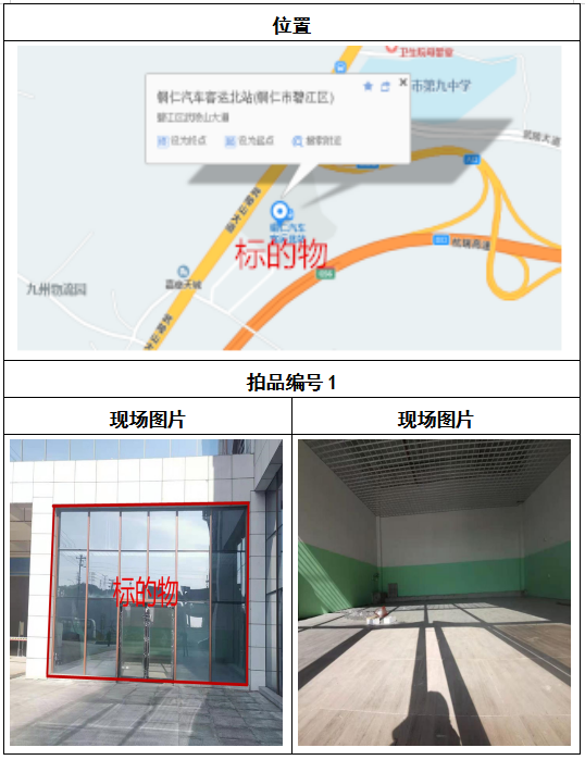 1、銅仁市碧江區(qū)川硐汽車客運(yùn)北站A區(qū)進(jìn)站口負(fù)一層1號(hào)門面租賃權(quán),面積:81㎡,租賃期:5年,起拍租金單價(jià):2989元/月,競(jìng)租保證金:3萬元;