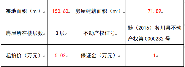 標(biāo)的二:遵義市務(wù)川縣豐樂鎮(zhèn)豐樂村豐樂老街場(chǎng)上(農(nóng)行營(yíng)業(yè)所)3-2號(hào)的住宅房地產(chǎn)