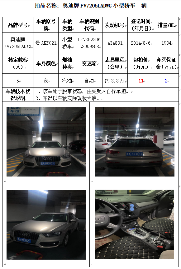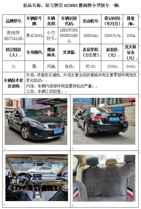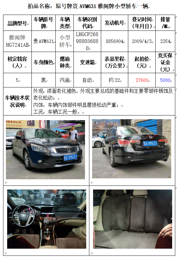 受委托,本公司定于2021年10月11日(星期一)下午14:30時(shí),在貴陽市中華南路20號(hào)新大陸數(shù)碼廣場10樓D座拍賣廳公開拍賣以下車輛: