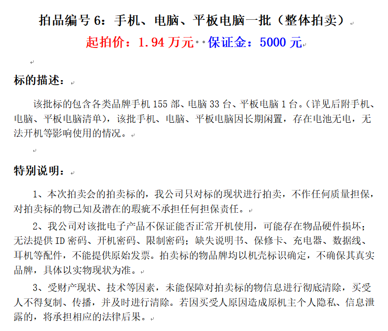 手機、電腦、平板電腦等電子產(chǎn)品一批(整體拍賣)